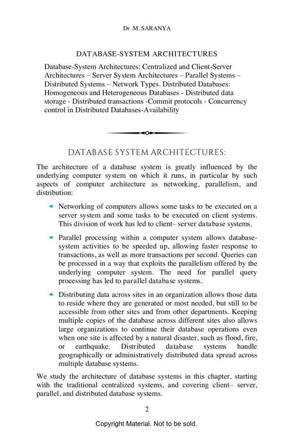 This book covers computer-system architecture, and describes the influence of the underlying computer system on the database system. We discuss centralized systems, client-server systems, and parallel and distributed architectures. On parallel databases, explores a variety of parallelization techniques, including I/O parallelism, interquery and intraquery parallelism, and interoperation and intraoperation parallelism. The chapter also describes parallel-system design. In distributed database systems, revisiting the issues of database design, transaction management, and query evaluation and optimization, in the context of distributed databases. The chapter also covers issues of system availability during failures, heterogeneous distributed databases, cloud-based databases, and distributed directory systems.here is a lot of value in the stability of this reign. An organization’s data lasts much longer that its programs (at least that’s what people tell us—we’ve seen plenty of very old programs out there). It’s valuable to have a stable data storage that’s well understood and accessible from many application programming platforms. Now, however, there’s a new challenger on the block under the confrontational tag of NoSQL. It’s born out of a need to handle larger data volumes which forced a fundamental shift to building large hardware platforms through clusters of commodity servers. This need has also raised long-running concerns about the difficulties of making application code play well with the relational data model. The term “NoSQL” is very ill-defined. It’s generally applied to a number of recent nonrelational databases such as Cassandra, Mongo, Neo4J, and Riak. They embrace schemaless data, run on clusters, and have the ability to trade off traditional consistency for other useful properties. Advocates of NoSQL databases claim that they can build systems that are more performant, scale much better, and are easier to program with.We see this book as being a small primer and introduction to MongoDB. In order to have such a wide variety of uses a tool must be infinitely flexible, which MongoDB is. At the same time, this flexibility does come with a small learning curve and that is why this book exists. We aim to provide people with a great way to look at many of the core storage features of MongoDB. To do this, we have eschewed some of the more complex operational features such as Sharding and Replication, we also avoided going into depth with a lot of the operations level mechanics.