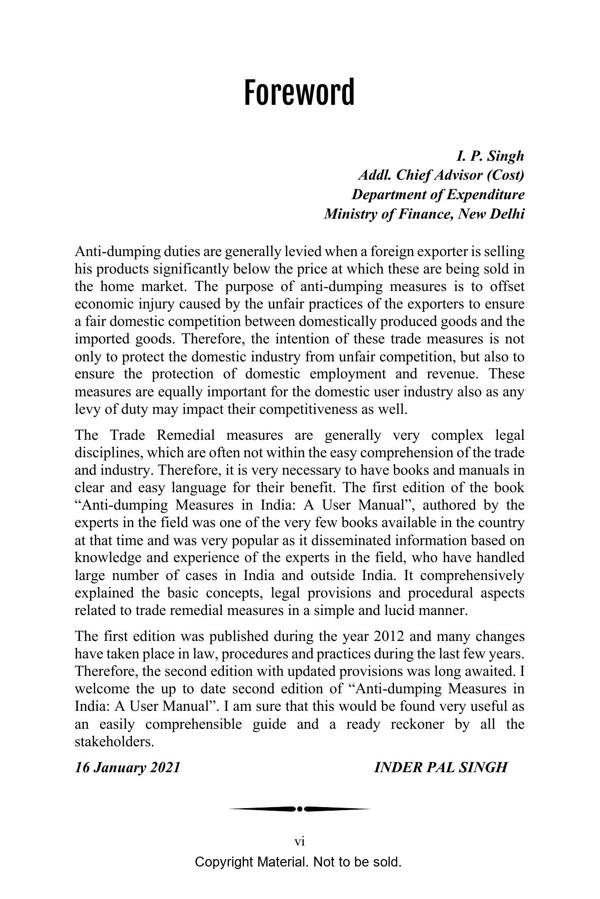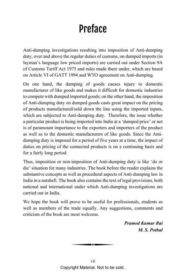 The book explains the substantive concepts as well as procedural aspects of Anti-dumping law in India in a nutshell. It also contains the text of legal provisions, both national and international along with the format of applications and responses to be submitted by interested parties. The book shall be useful for professionals, members of the trade, and law students.