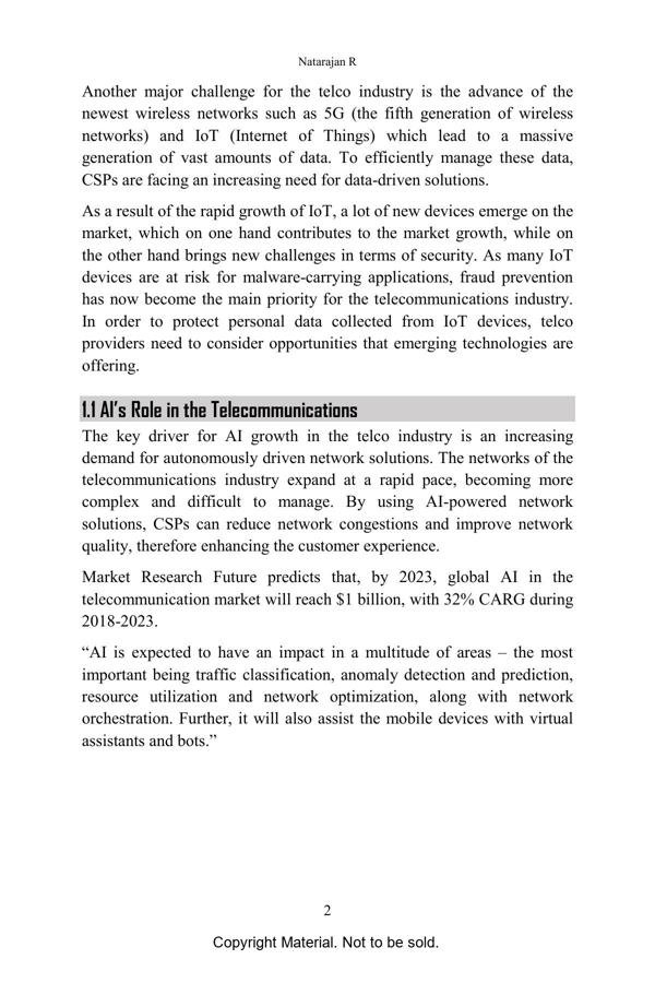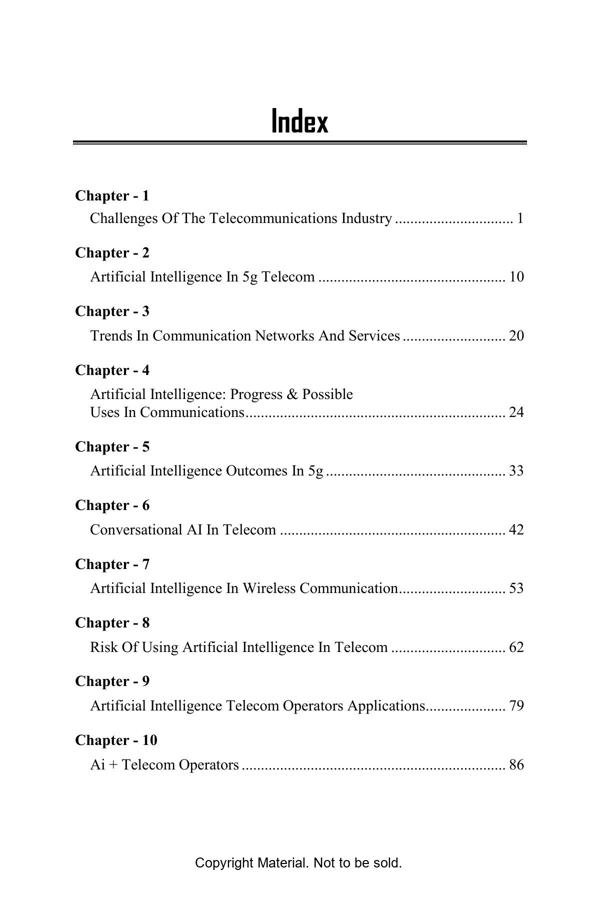 This Book is about the Artificial Intelligence in Communication. This Describes the AI Depth Concepts in Telecom and other Communication(Wireless) Technologies.