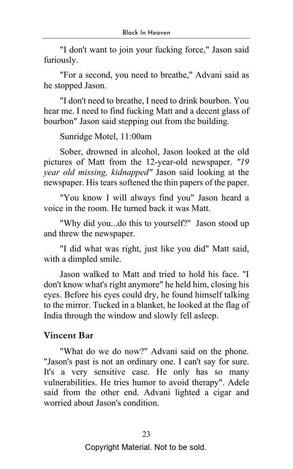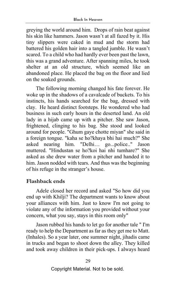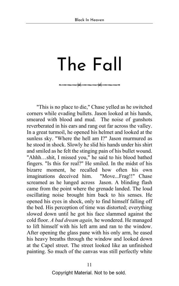The town is as it was before, just devoid of the warmth that made it worthy of that term. A collection of buildings, roads laid like a carpet for a queen that will never come. Banners hang with slogans to be read-only by the dust-laden wind. The market is all set up like it awaits the stallholders at any moment. The only sound is the blackbird that cries as if it can bring back the people who left tasty scraps if only it calls loud enough. Against the wall of the old courthouse is a bicycle, the chain dangling on the sidewalk. Ahead is the clock tower, forever stuck at half past noon. If you stand still enough perhaps time is indeed frozen, perhaps it is just your bones that don’t realize it. Or perhaps it’s the cursed town. Such is Woodfort, an Indian town abandoned after the British reign. But make no mistake time has flourished here also. But what happens when a man who lusts war crosses path with a man who knows the grim sobriety that comes with war. Well dive on… learn how to fall.