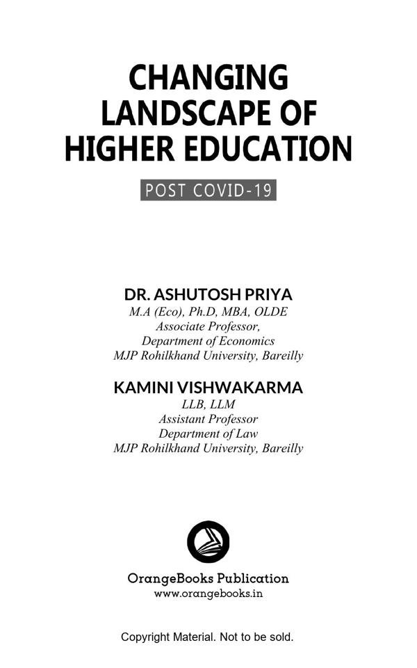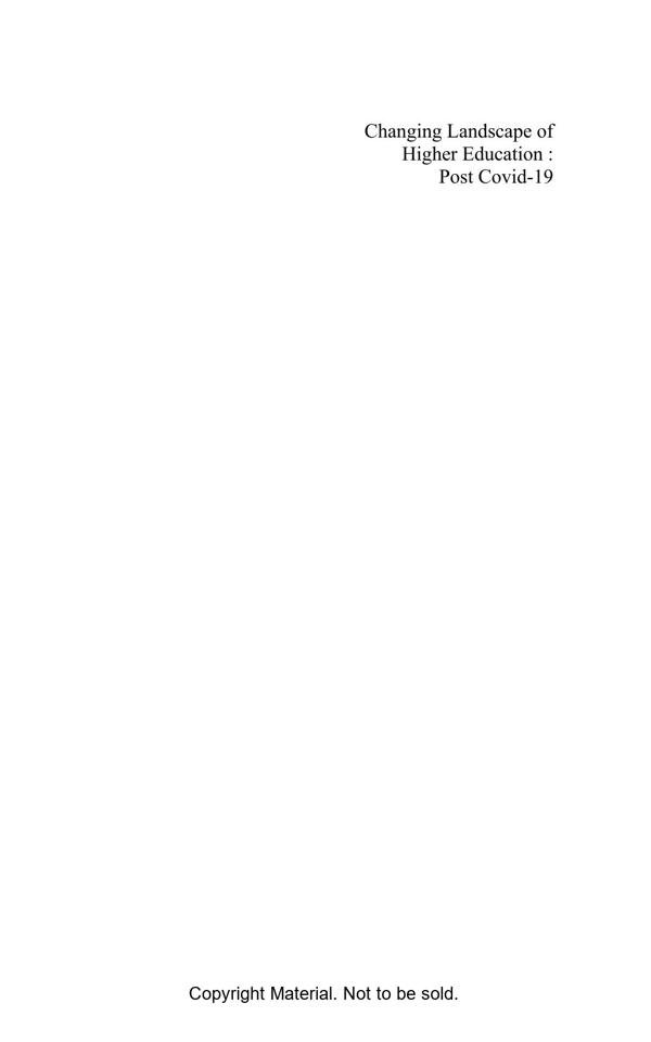 The purpose of this edited book is to discuss the impact of COVID-19 on higher education. This edited volume made an effort to identify and investigate the challenges that p our higher education the system is facing due to COVID-19 disruption and will try to find out the future landscape. Articles/papers those are contributed in the book are addressing the subject in detail. We are sure that this book will help the educators, research scholars and practitioners to reconsider and will help them to imagine about the future course of action and surely they will get insight for better policy and practice for coping with the challenges of COVID-19.