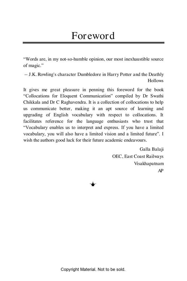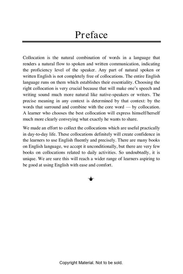 This book is a brilliant compilation of different types of collocations with lucid sentences that exemplify the usage. It is an apt source to gather a comprehensive understanding of vocabulary combinations. The book will cater to all leaners irrespective of their academic choice and profession.