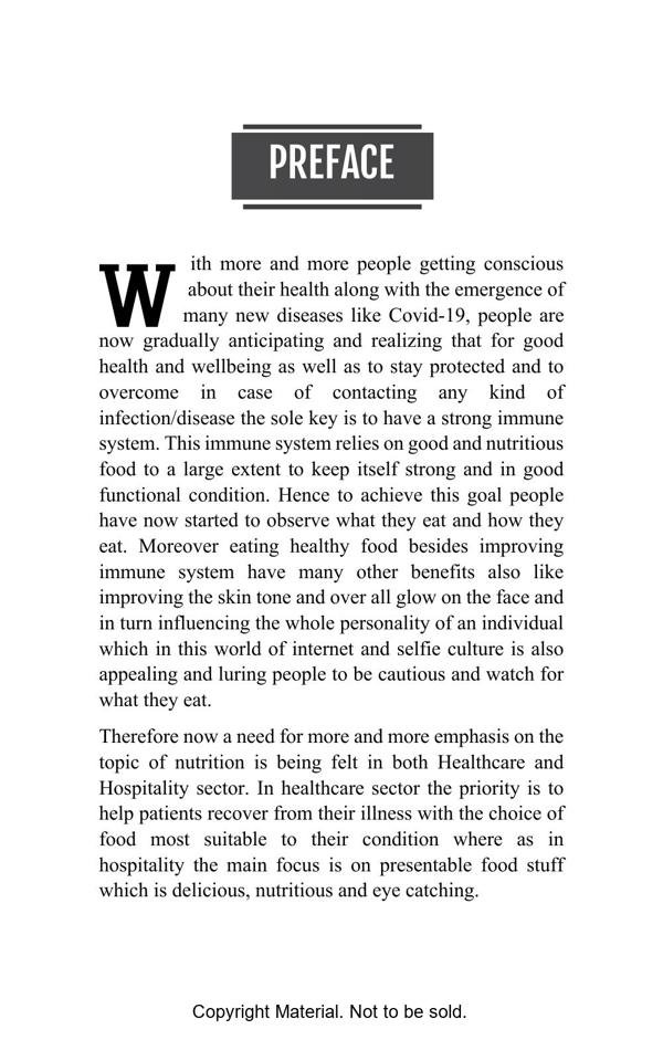 This book is an outcome of combination of ‘wisdom of Ayurveda’ with ‘culinary expertise’ of Hospitality industry, with both the experts of respective fields sitting together to bring out a book to help students of both Hospitality & Health care sectors understand the importance and significance of healthy diet in one’s life.