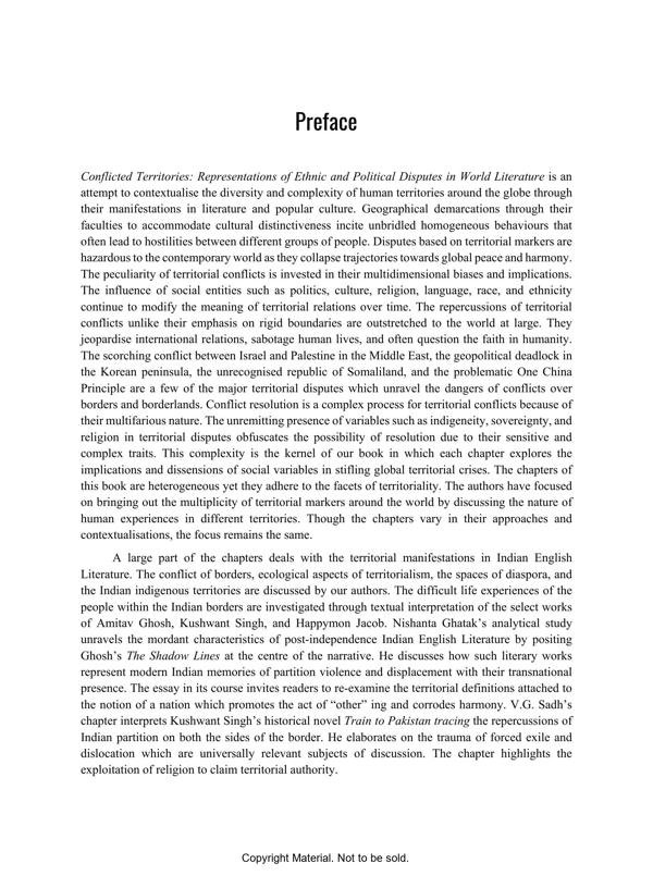 Conflicted Territories: Representations of Ethnic and Political Disputes in World Literature is an attempt to contextualise the diversity and complexity of human territories around the globe through their manifestations in literature and popular culture. The unremitting presence of social variables such as indigeneity, sovereignty, and religion in territorial disputes obfuscates the possibility of conflict resolution due to their sensitive and complex traits. This complexity is the kernel of this book in which each chapter explores the implications and dissensions of social variables in stifling global territorial crises.
