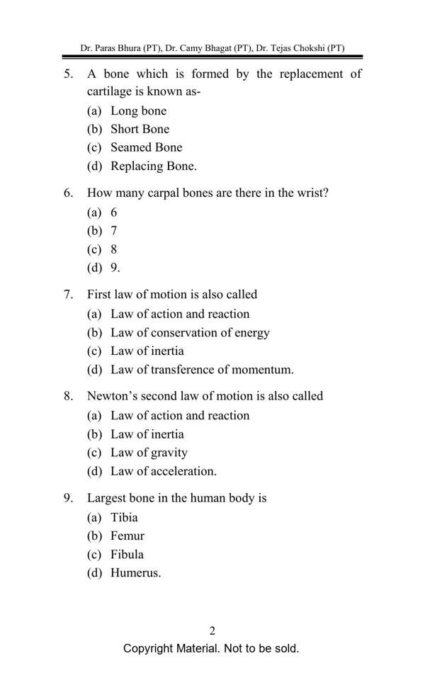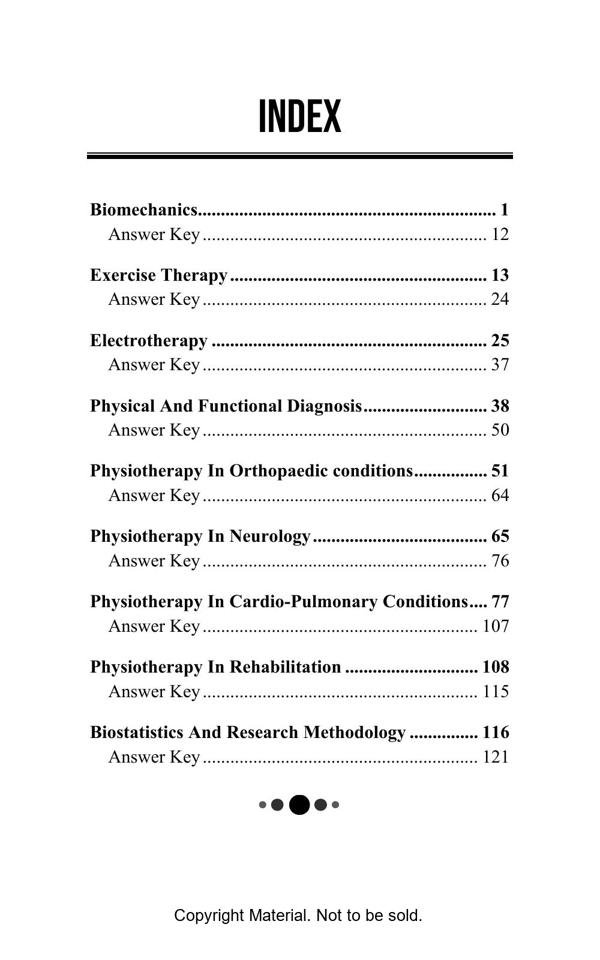 This book covers all multiple choice questions from the core subject of Physiotherapy which will be helpful to all undergraduate and postgraduate students for their Exam Preparation. It will be also helpful to physiotherapists who are planning to clear exams of other countries. Apart from this, Book includes Case scenarios for better Understanding
