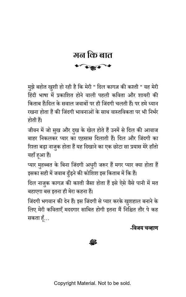 ‘Dil kagaz ki kashti’ is my first book of poems and shayari to be published in Hindi language. Life runs on the questions and answers within the heart. But we have to keep in mind that life depends on reality along with expectations. Heart is like a fragile paper boat, don’t let it flow in the normal water. that’s all I have to say. life is a gift from God. I can say that my poems will prove to be helful in loving this life and making it more happy.