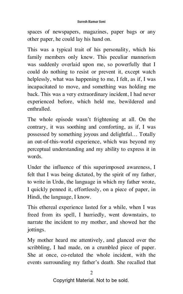 The author experienced a freak encounter with the soul of his dead father. This soul stripping incident seemed so real that he could not dismiss it as false. However, he tried to erase the episode from his memory and failed so the impact of the unusual happening kept simmering at the back of his mind. He wanted to get rid from this suppressed mental condition but did not know, how mystical matters, which defy rational explanation are handled, consequently he posted a blog to invite readers to give their opinion on this extrasensory experience. Mario Beauregard, commented on this unexplainable explanation saying that … “Nobody but you can respond to your questions” … Likewise, Dr. Raymond Moody opined that… “These kinds of spiritual experiences are common and do seem to have very long lasting, even life changing effects, on those who experience them, so that would infer that they are real” … Mystery is a big puzzle, the more we try to uncover it, the more elusive it becomes, making the whole exercise complex. Due to lack of clarity, it is difficult, indeed, to sort out facts from fiction, to arrive at a reasonable explanation. After all, death and afterlife are not an intellectual process and mystery has little to do with intelligence. Intellect can ignite curiosity and create various disciplines of logic, philosophy, religion and science, as the search engines, to explore, the vast sea of information. But can it really reveal, wholly or partially, the reality, it seeks to know? Can our three-dimensional view, penetrate the realities of a multi-dimensional world? The Indian sages called it “Turiya”, which literally means the fourth dimension, a state, we know ‘Nothing’ of ‘Something’ that exists, beyond human understanding.
