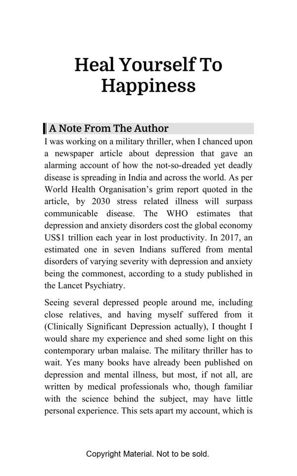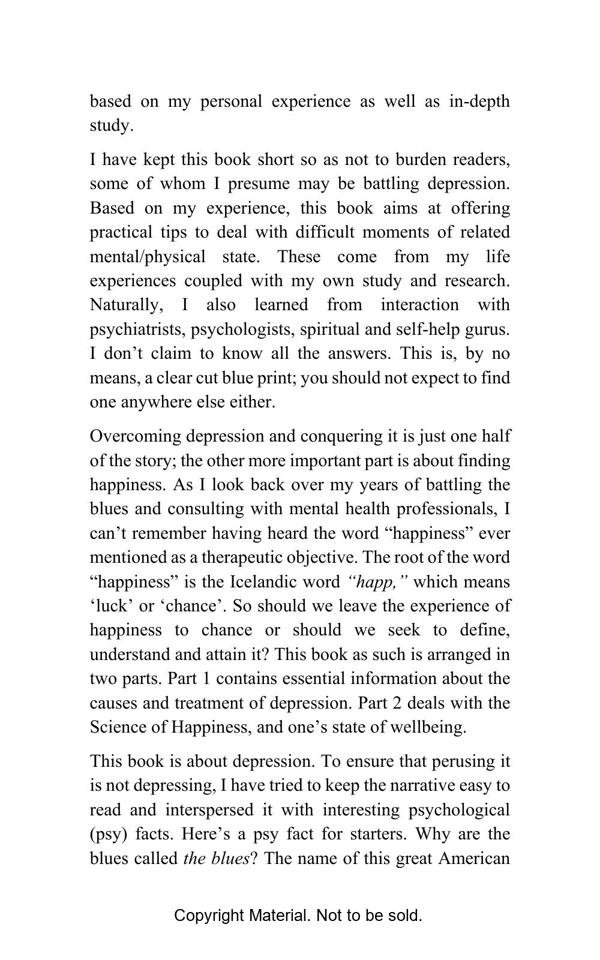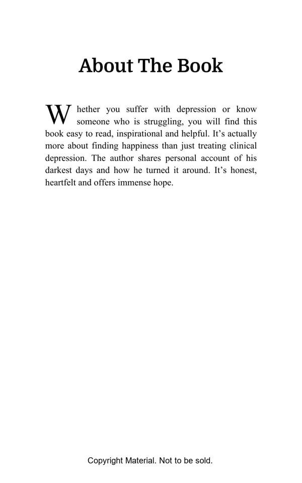 Whether you suffer with depression or know someone who is struggling, you will find this book easy to read, inspirational and helpful. It’s actually more about finding happiness than just treating clinical depression. The author shares personal account of his darkest days and how he turned it around. It’s honest, heartfelt and offers immense hope.