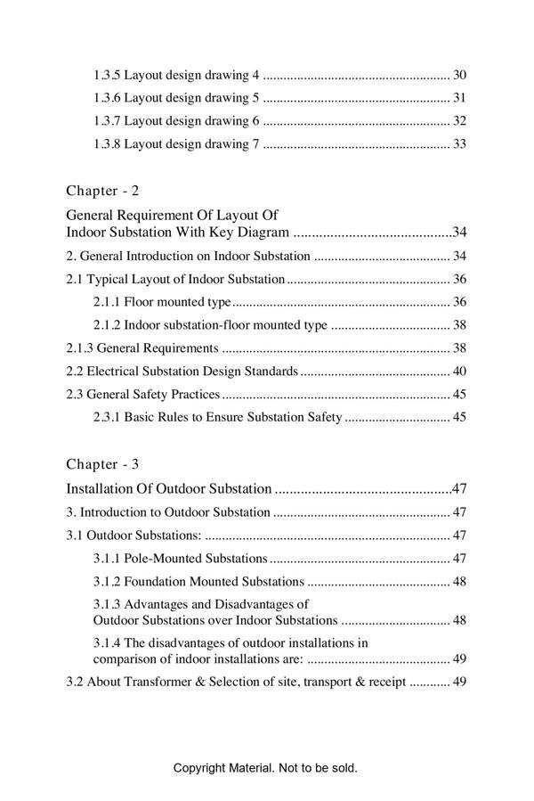 General requirements of layout of indoor substations and outdoor substations with key diagrams are presented in this book. Safe operation, selection of site, transport & receipt of transformer, checking of insulation resistance of the winding, testing of transformer oil, protection fittings, construction of mounting, earthing arrangement, proper maintenance and final commissioning presented briefly in each chapter of this book.