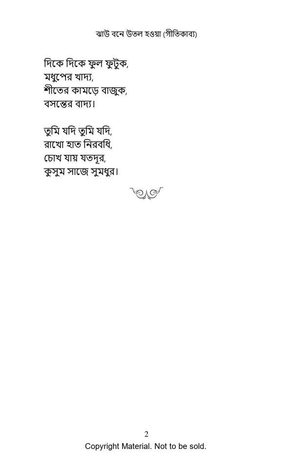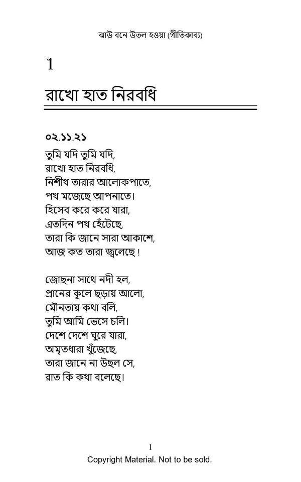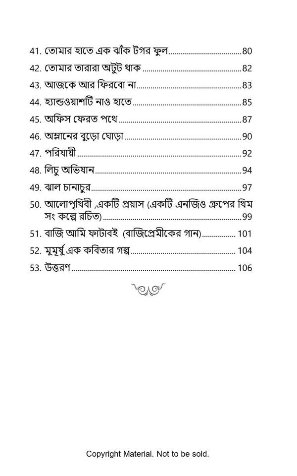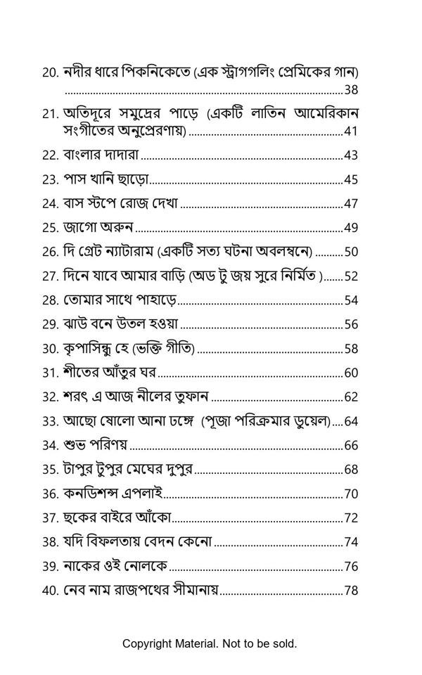 The main objective of writing this book was to create some poetry suitable for songs. As the emotional message in a good song is such a wonderful and cherishable experience, hopefully a good script will also be a vibrant content for creation of a wonderful array of songs in future. Another aspect of these poems is the constant interaction of different societal elements with society, expressed in humorous poetry. Also a constant effort has been put to bring ‘Time signature’ in different poems.