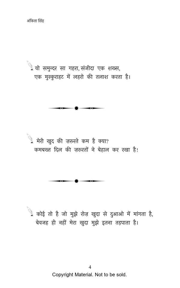 No matter who is reading the book, the reader will surely find one (or more) poem(s) relatable to himself/herself from this amazing collection of poems. The way author has managed to write these poems, each having a personality of its own & dealing with different aspects of life, is commendable.