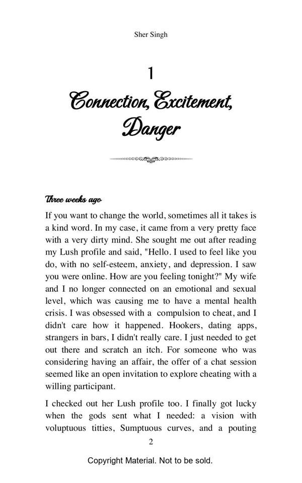 MORE THAN SEXY ( TEN LOVE STORIES ) IF YOU WANT TO CHANGE THINGS, YOU NEED TO SPEAK UP My wife and I no longer connected on an emotional and sexual level, which was causing me to have a mental health crisis. I told the real world to take a hike while I indulged in fantasy role play as she yelled, “Yes, pinch my nipples! It is still so new to me how online sex can be so liberating. I had more fantasy sex with her in one night than with my wife this year (although that number is improving). My wife won’t deep throat or do anal, so role play must fill those needs. I didn’t think my wife would understand, but I desperately needed the emotional connection that I had formed online Is it possible to fall in love in less than twelve hours? The whispers of meeting in real life, which will probably never happen, helped to keep the illusion of happiness alive a little longer. But I am no longer desperately alone in my misery as an online stranger sought me out based only on my Lush profile. She gave me a few kind words when she saw me online. My therapist stressed open communication in marriage, so my wife and I took a weekend at a hotel to get away. The urgent need to act somehow dissipated, the fantasy of an affair being much different after discovering that I still passionately love my wife. Now free to chat with others and get my frustrations out online, my marriage seems stronger. We have been getting back to the way things were in the beginning, twenty-four years ago, when trying new things was the order of the day.