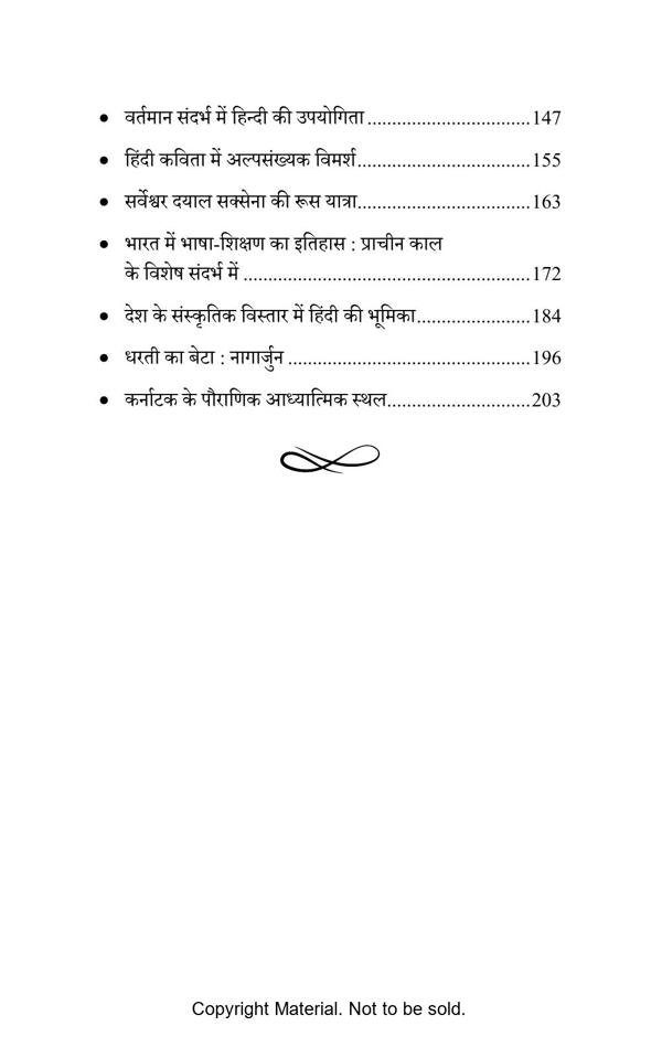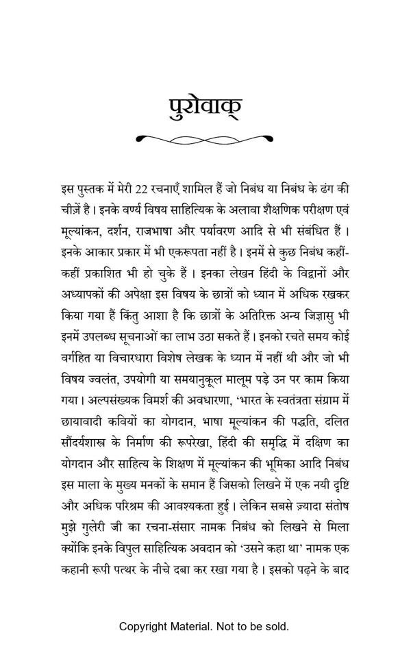 This book contains 22 articles and write-ups on different topics of language, literature, art, culture, philosophy and educational testing and evaluation. It’s basically meant for the sake of the students but the teachers are even common readers can get benefitted to some extent by going through it. The essays are based on the classic subjects on one hand and on the other hand there is an attempt to cover the most recent ones too. The very importance of this work lies in the fact that it is prepared in Hindi sitting thousands of miles away from the core Hindi belt. This is what the author tend to claim. Let the readers decide it’s worth.