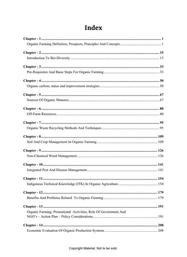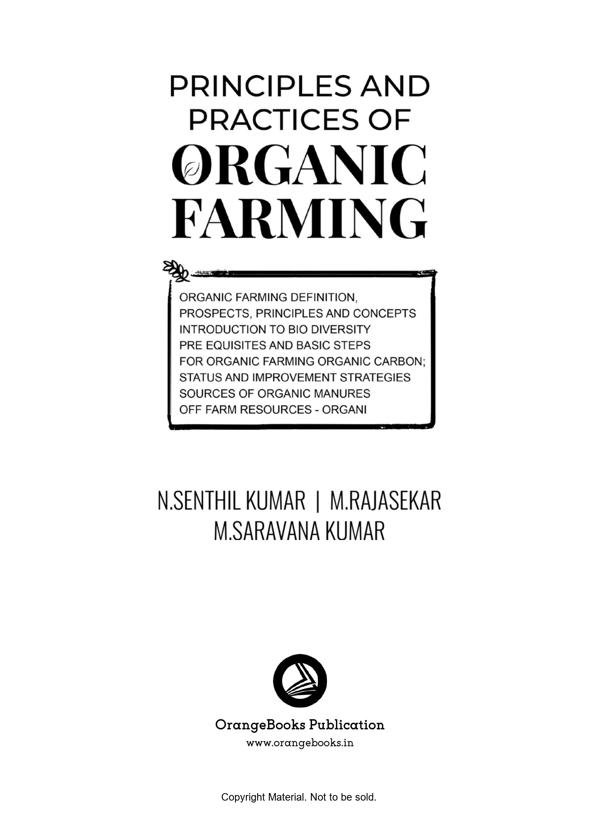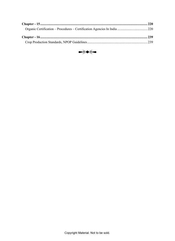 This book is elaborately describes about the basic principles and need of organic farming, importance of bio diversity, steps involved in organic conversion, list of permitted and prohibited substances in organic farming, organic certifying agencies in India, certification process and economics of organic cultivation in different crops.