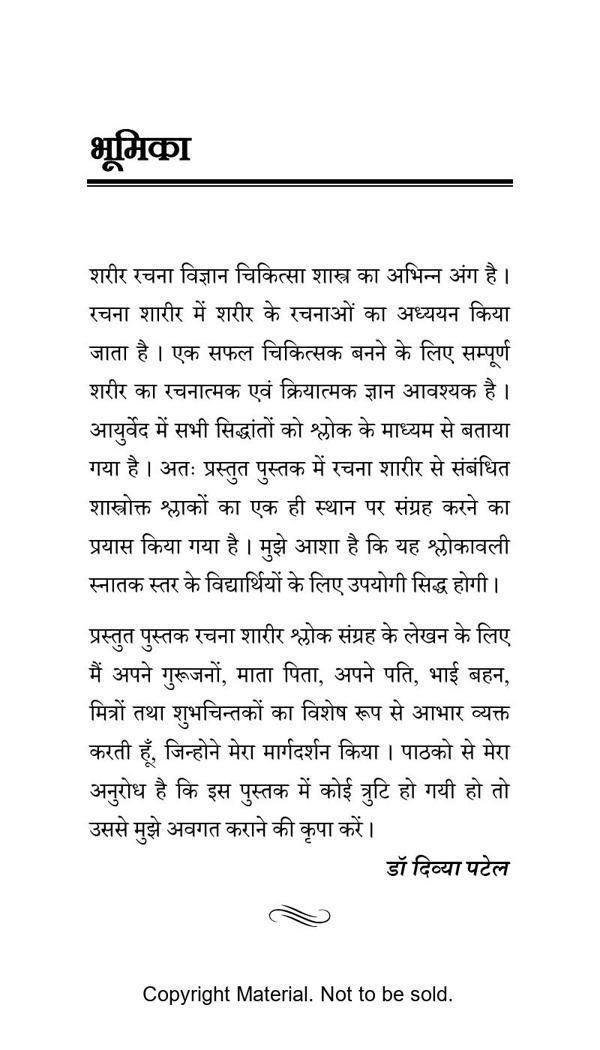 In Rachna Sharir, we study the structure of the human body. To be a good physician it is needed to know about the normal structure and function of the human body. In Ayurveda, the sutras are defined by slokas. In this book, slokas are collected as per the NCISM Rachna Sharir syllabus and i hope this book will be very useful for Ayurved students.