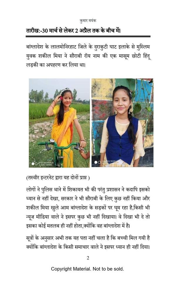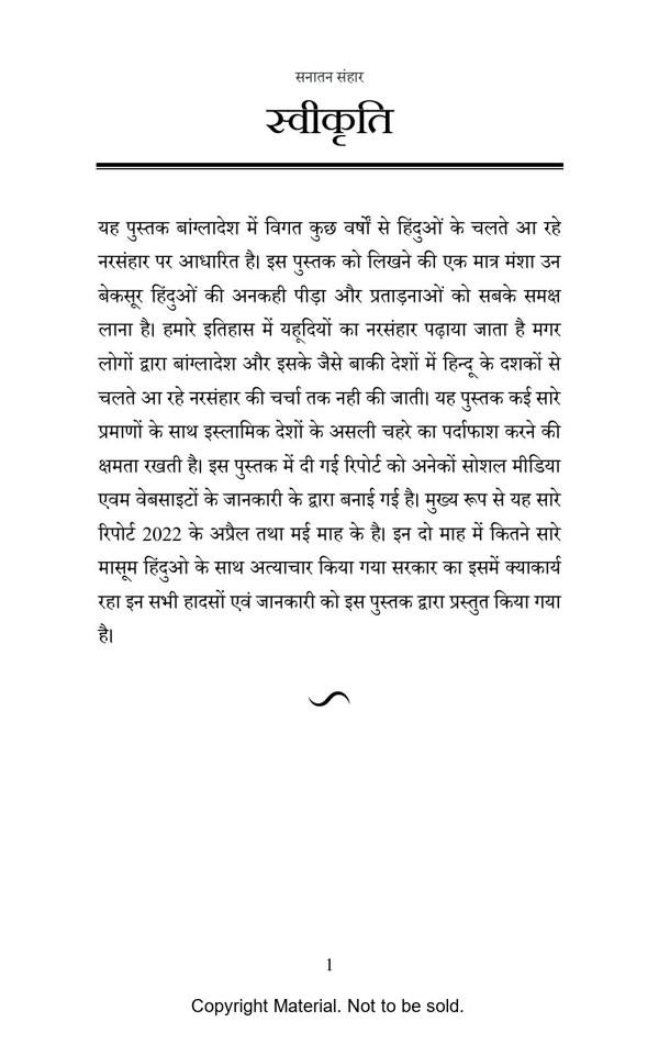 It is based on a real incident, this book is based on the genocide of Hindus in Bangladesh for the last few years. The sole purpose of writing this book is to bring to the public the untold suffering and torture of those innocent Hindus. Genocide of Jews is taught in our history, but people do not even discuss the genocide of Hindus that has been going on for decades in Bangladesh and other countries like it. This book has the ability to expose the real face of Islamic countries with many proofs.