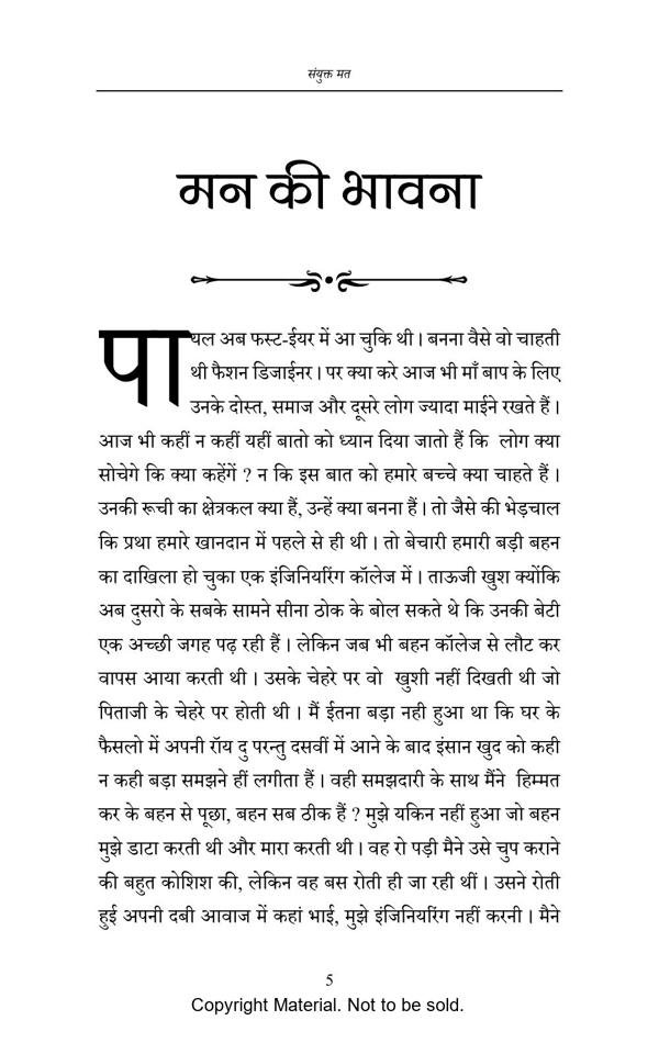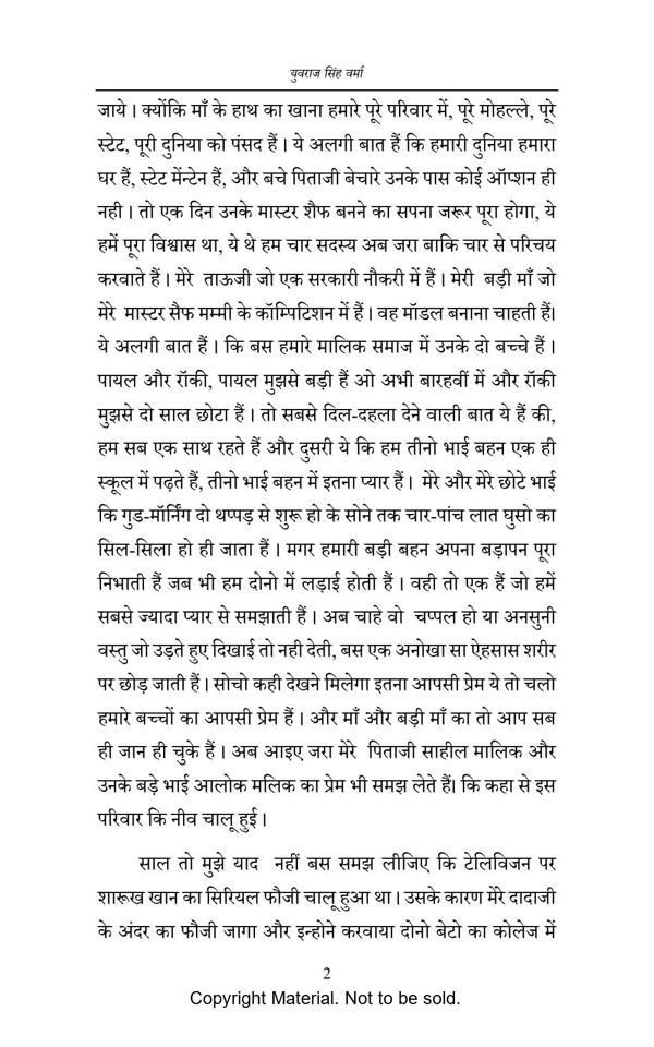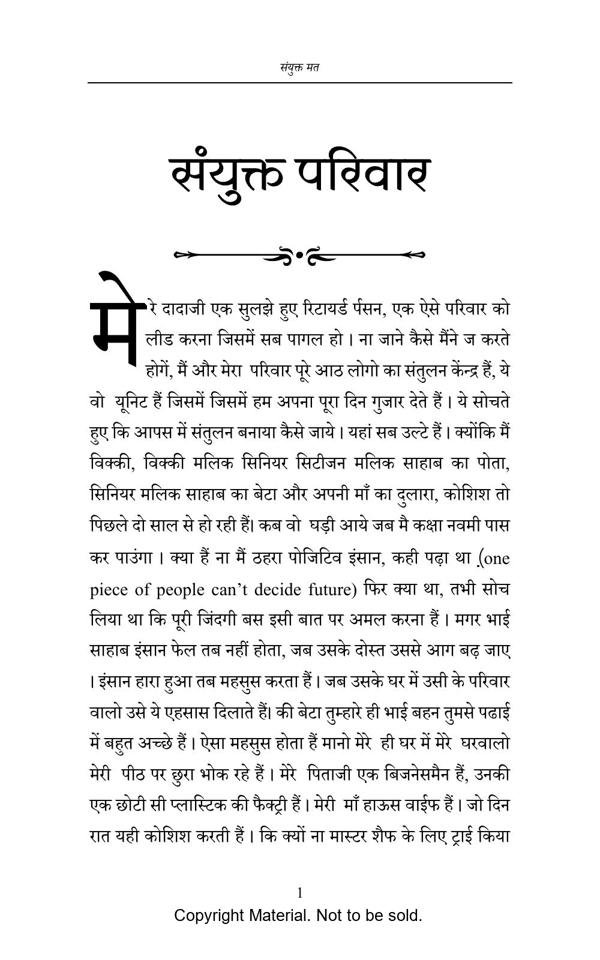 In this masterpiece, readers will experience their own thoughts and figures bumbling somewhere in their mind from a long time. This book is about a joint family, where reader will relate every family member’s thinking with theres’. The story revolves arround the circumstances and various situations which a family has to face when it comes to society, decision, age difference, communication gap, etc.