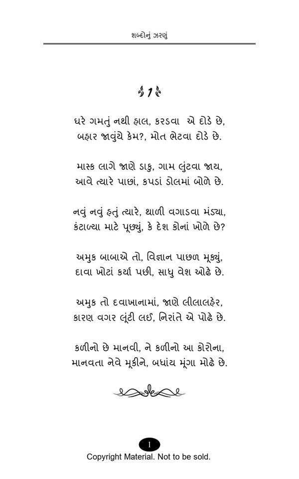 The Book Of Poetries ‘ Shabdo Nu Zarnu ‘ Is All About Life’s Most Important Moment’s Like Happiness, Sadness Etc.. Its Also Has Political Poetries Or Mythological Poetries.