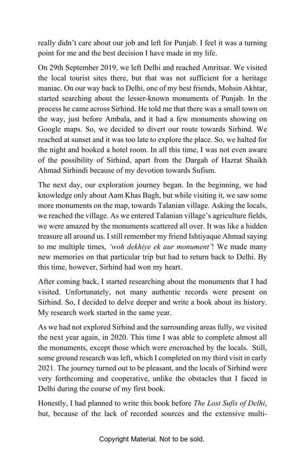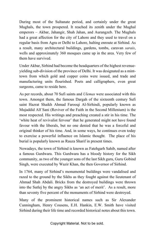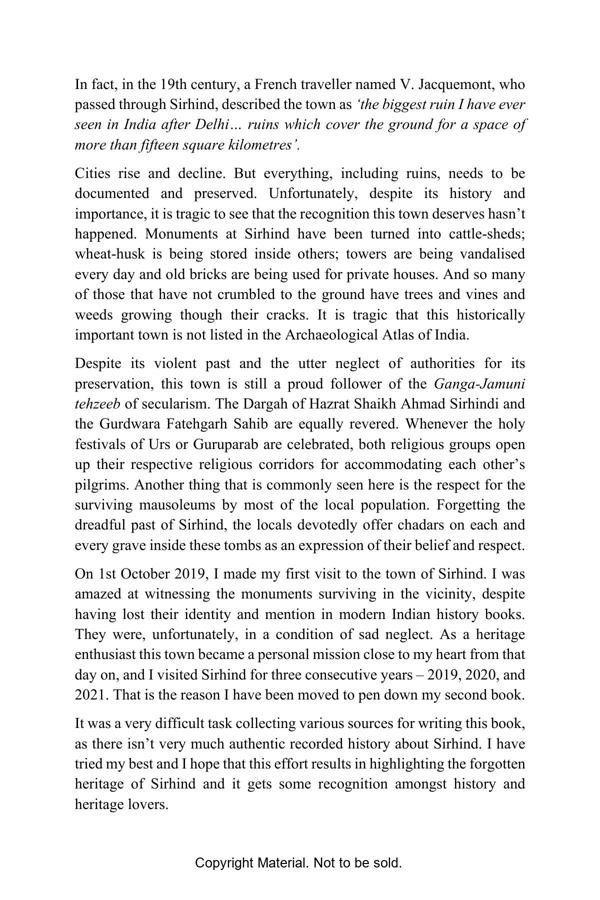 Sirhind, a town located 270 km distance from Delhi in Punjab. A small town nowadays famous for a Gurdwara “Fatehgarh Sahib”, once was a strategic center between Delhi and Lahore. It was one of the most flourishing towns of the Mughal empire for more than a century but only till the beginning of the 18th century when two younger sons of Guru Gobind Singh were martyred here. This tragic incident put the town on negligence and decay. Once upon a time, the city had around 360 mosques, gardens, tombs, caravan sarais, and wells. Sadly, only about three dozen of these remain today. Sirhind: A Monumental Example of Oblivion is a historical trivia about the town of Sirhind. The book is an account of the brief history of the incidents took place in the town, its historical monuments and architecture with photographs. It is an attempt that can create awareness and activism amongst history and heritage lovers and will help them to visit these lesser-known monuments of Sirhind.