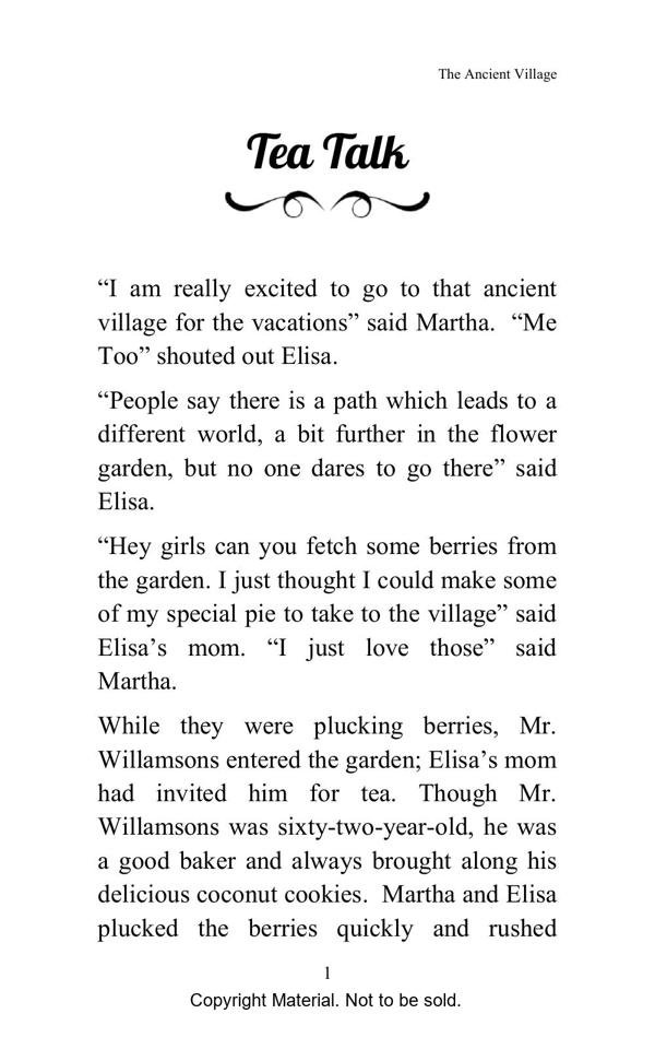 This is an adventure book about two eight year old girls who go to ancient village for having fun-filled and relaxing vacation. But, turns out to be lots of surprises waiting for them. There is second reason for them to go there, Someone is waiting for them since centuries….