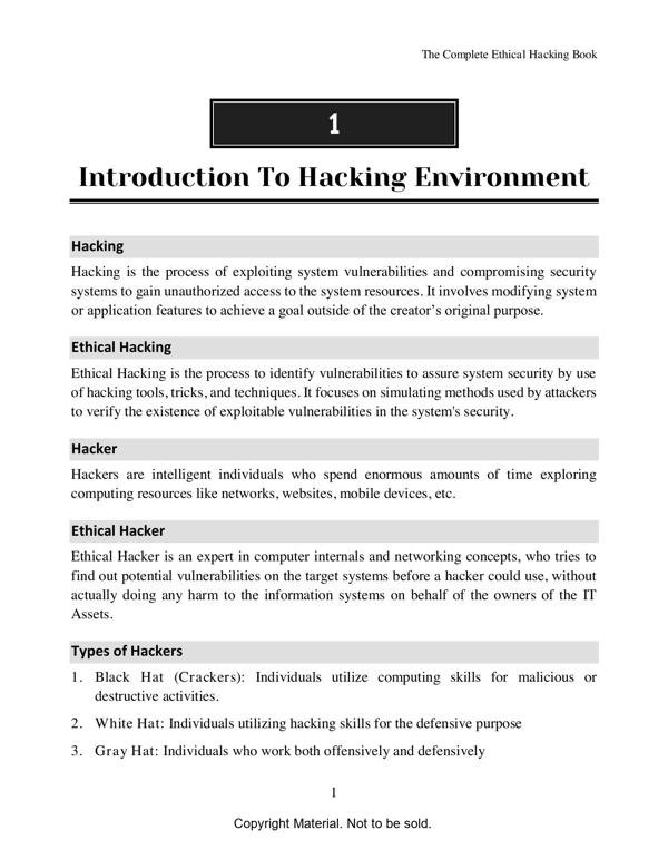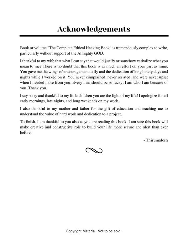 The Complete Ethical Hacking Book was written for the Aspirants those who want to start their career in Cyber security domain. This book specially focused on Ethical hacking part in Cyber Security which is most important to learn Ethical Hacking Concepts and topics to start their career in Cyber Security Domain.