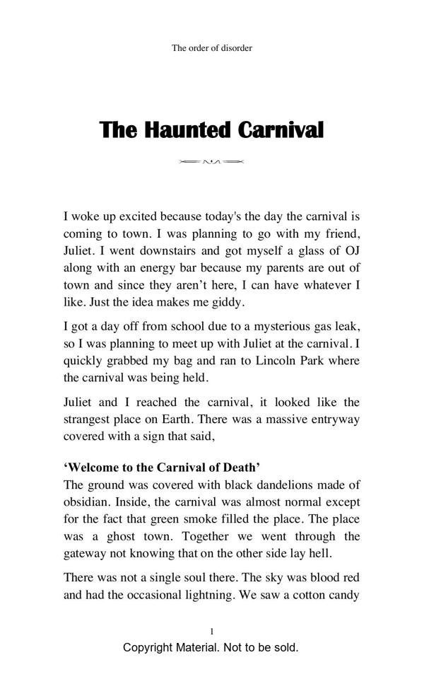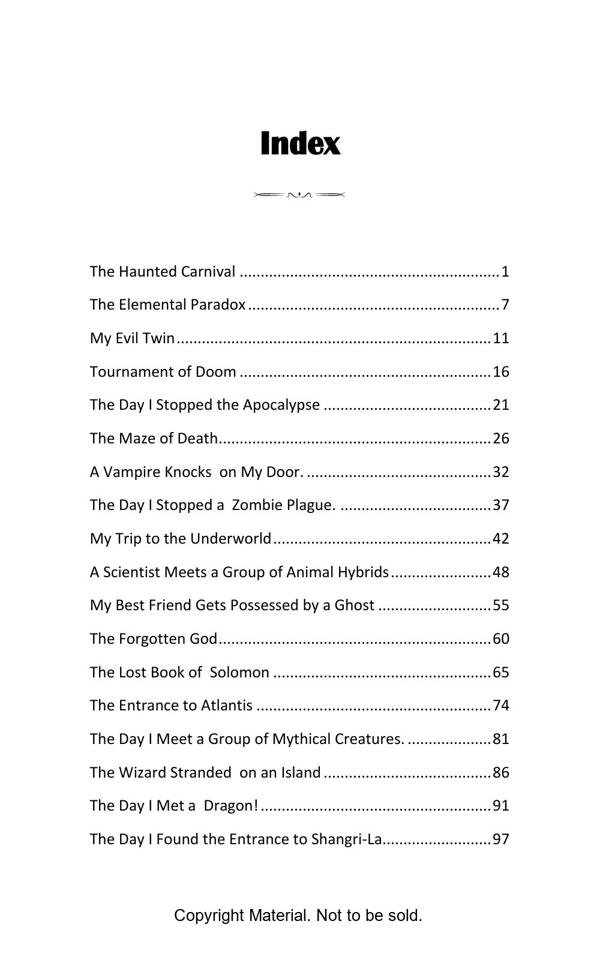 An anthology of 20 electrifying and enticing stories guaranteed to keep you on the edge of your seat. Each story is terrifically crafted to steer you through an intriguing encounter with a vivacious vampire to an exhilarating exploration of a haunted carnival with an impeccably dressed ghost, a very stimulating trip back in time to having witness your very best friend being possessed by a zesty spirit. This book will mount you on a splendid and resolute ride into the marvel of the unknown.