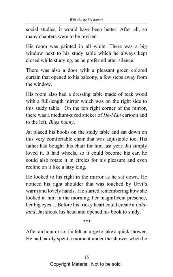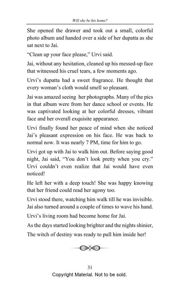 Everyone dreams of creating their own home. A home where they feel safe, loved, nurtured, probably all the possible positive feelings one can feel. Jai was always searching for the same. He wasn’t homeless but it was the feeling that he craved for. As he grew up he knew where he could find it but was too scared to look into his past and accept it. Will he be able to find his home in her?